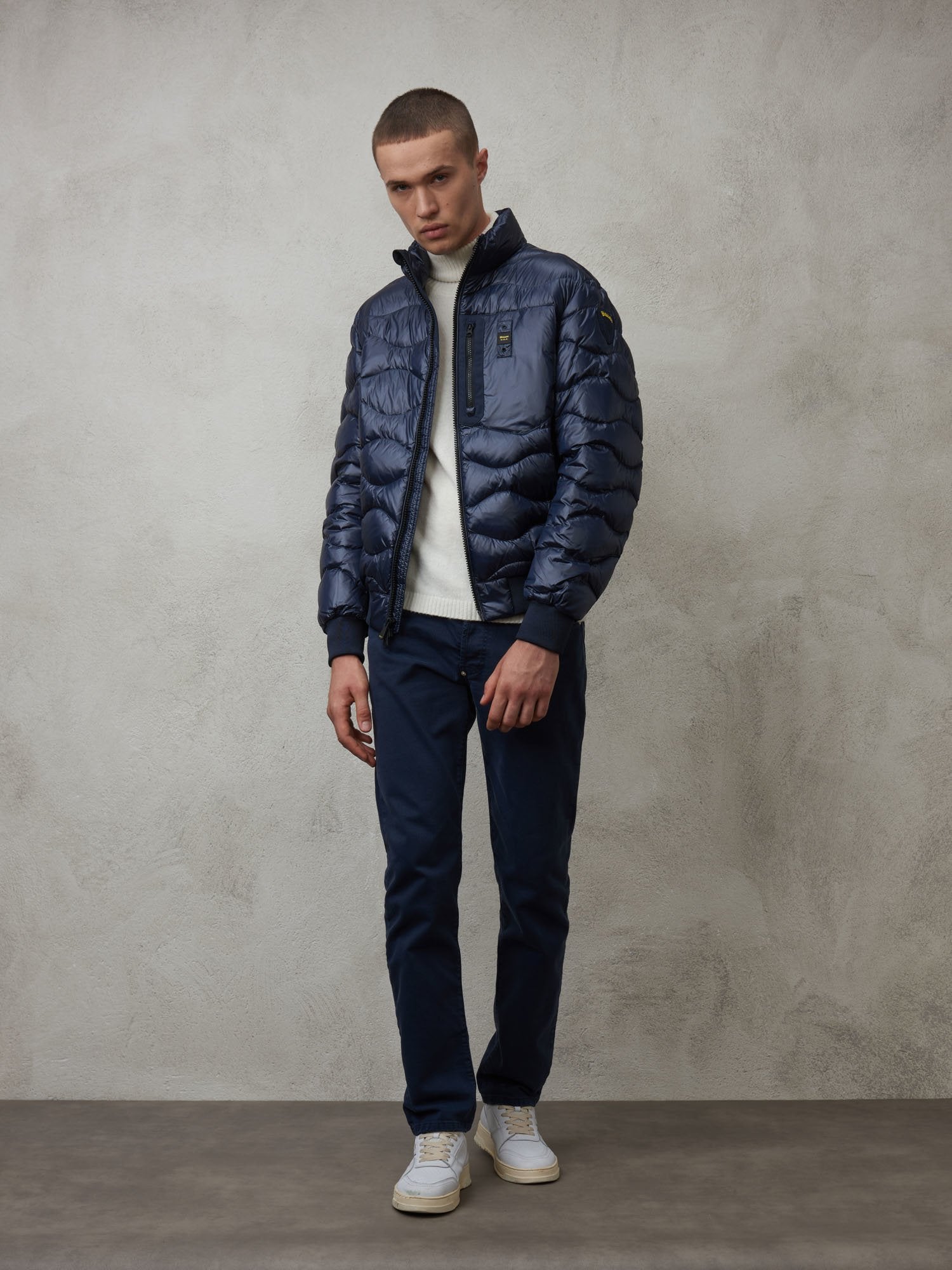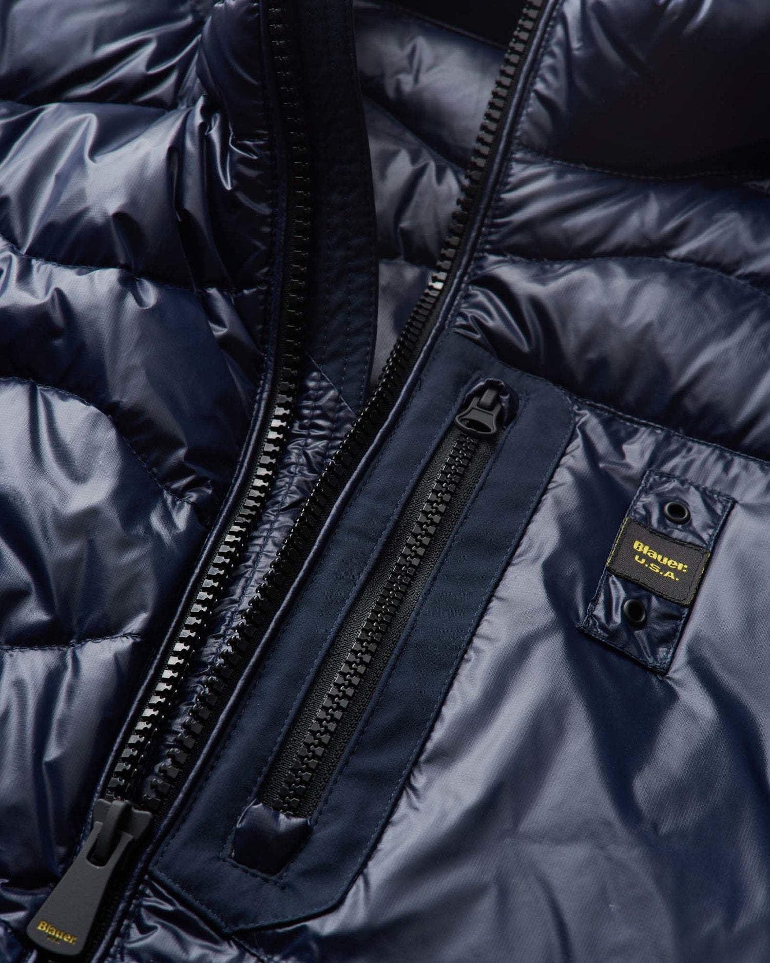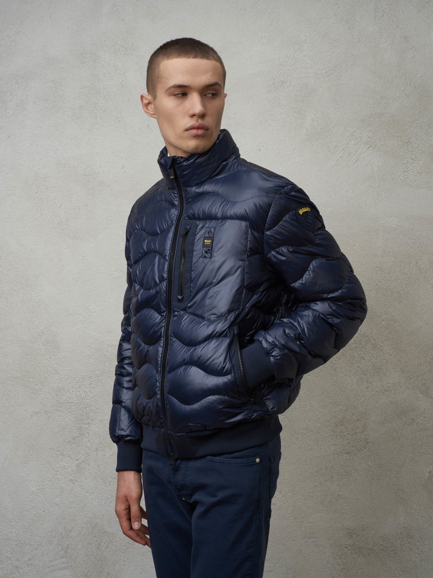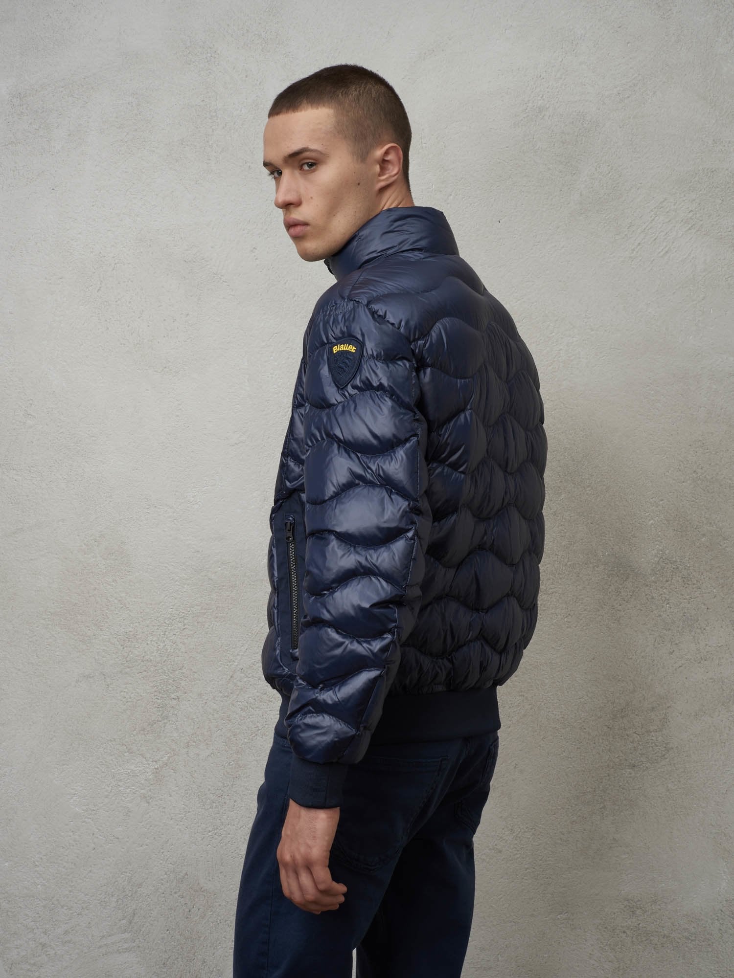 Characteristic Blauer loop sewn on the pocket and matching Blauer patch on left sleeve.