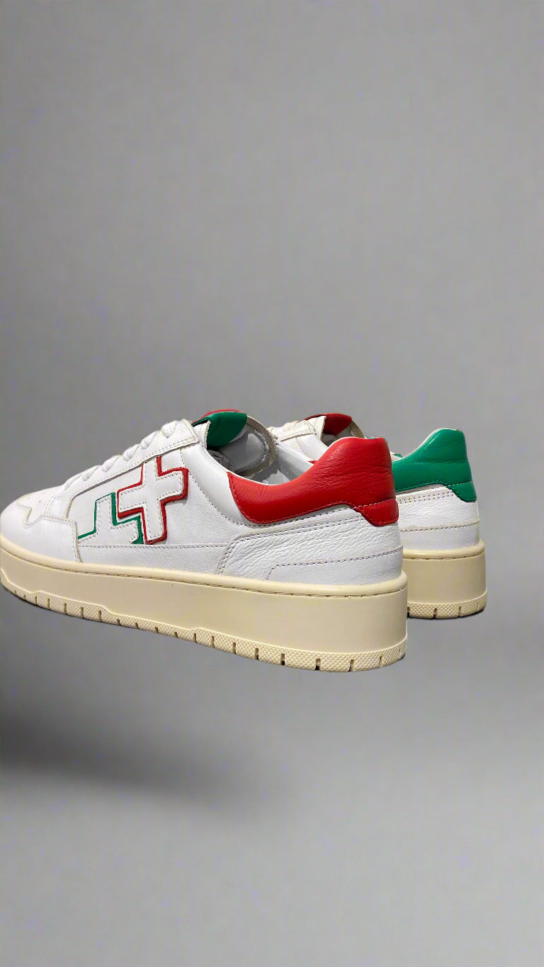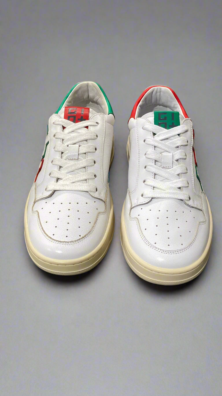 Crafted in Italy from 100% premium leather, these court sneakers combine refined style with functional design. Featuring a durable rubber sole with skid-resistant grip, they ensure reliable traction on various surfaces. Ideal for both athletic performance and casual wear, these sneakers offer versatility without compromising on quality or comfort.
