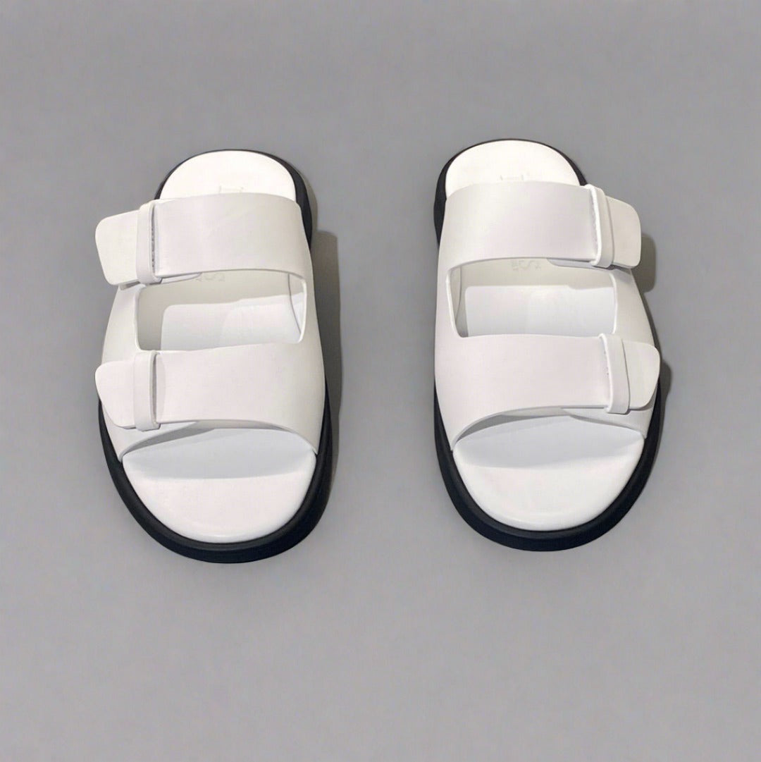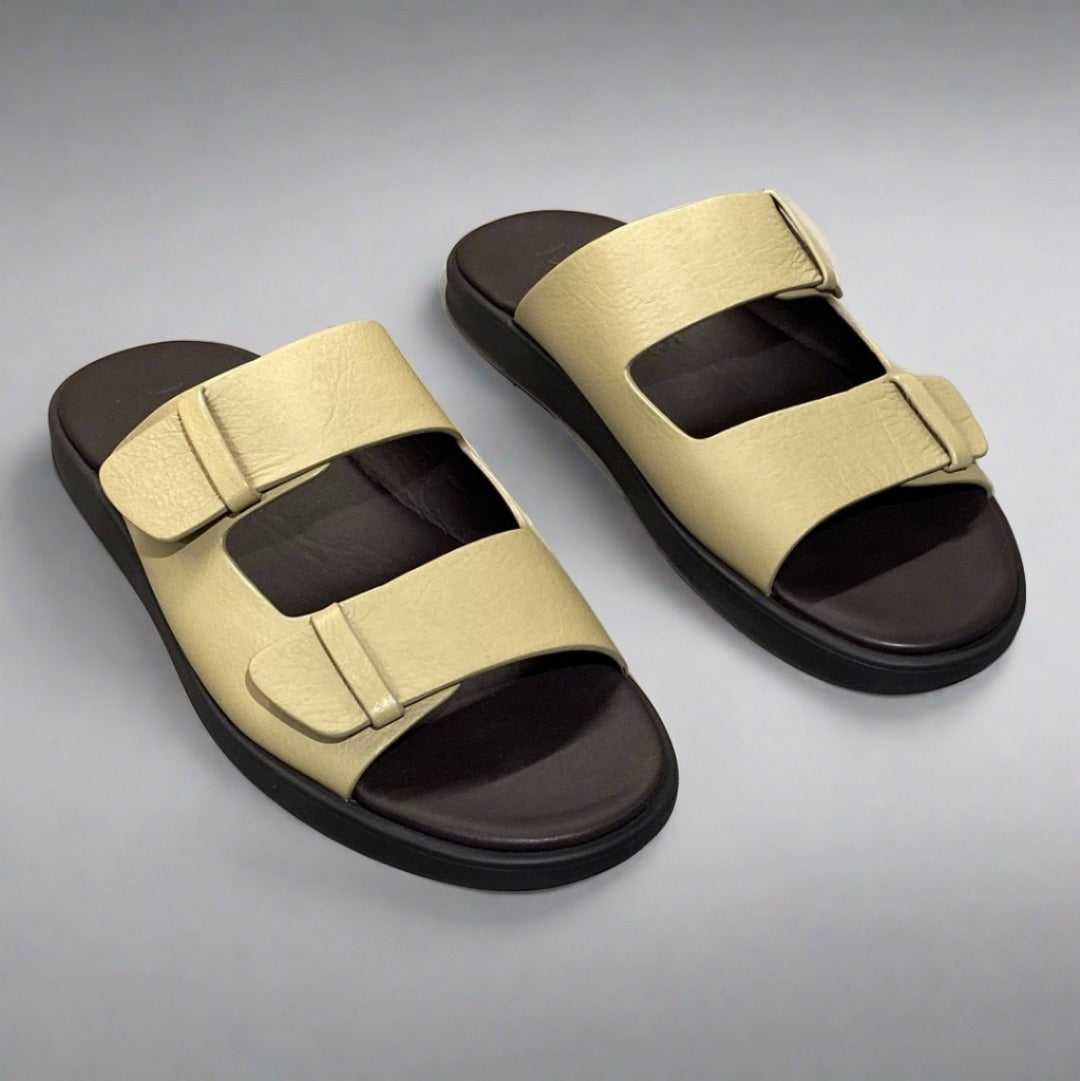 100% leather sandal with sealed straps, and skid grip rubber sole with Doucal`s embossed logo on the foot bed 100% Made in Italy