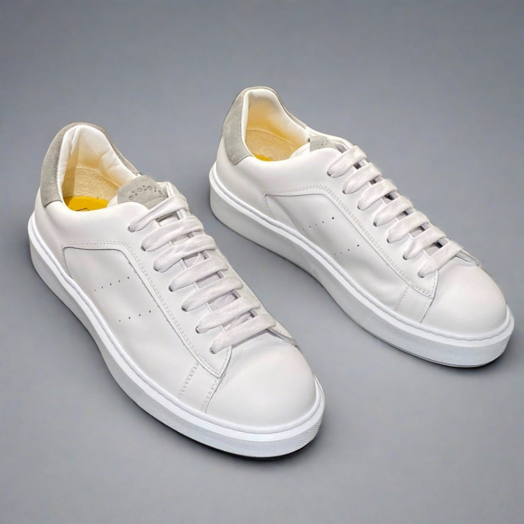 Doucal`s leather platform sneaker with soft foot bed, and extra light sole- Made in Italy