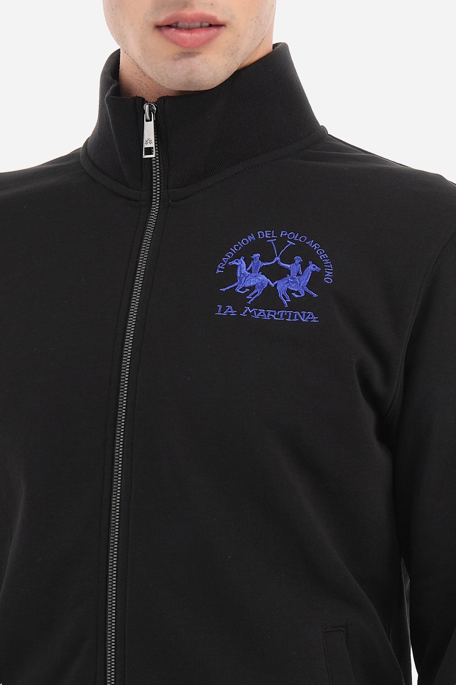 La Martina Designed Zip up Felpa with embroidered details and trim on cuffs and collar