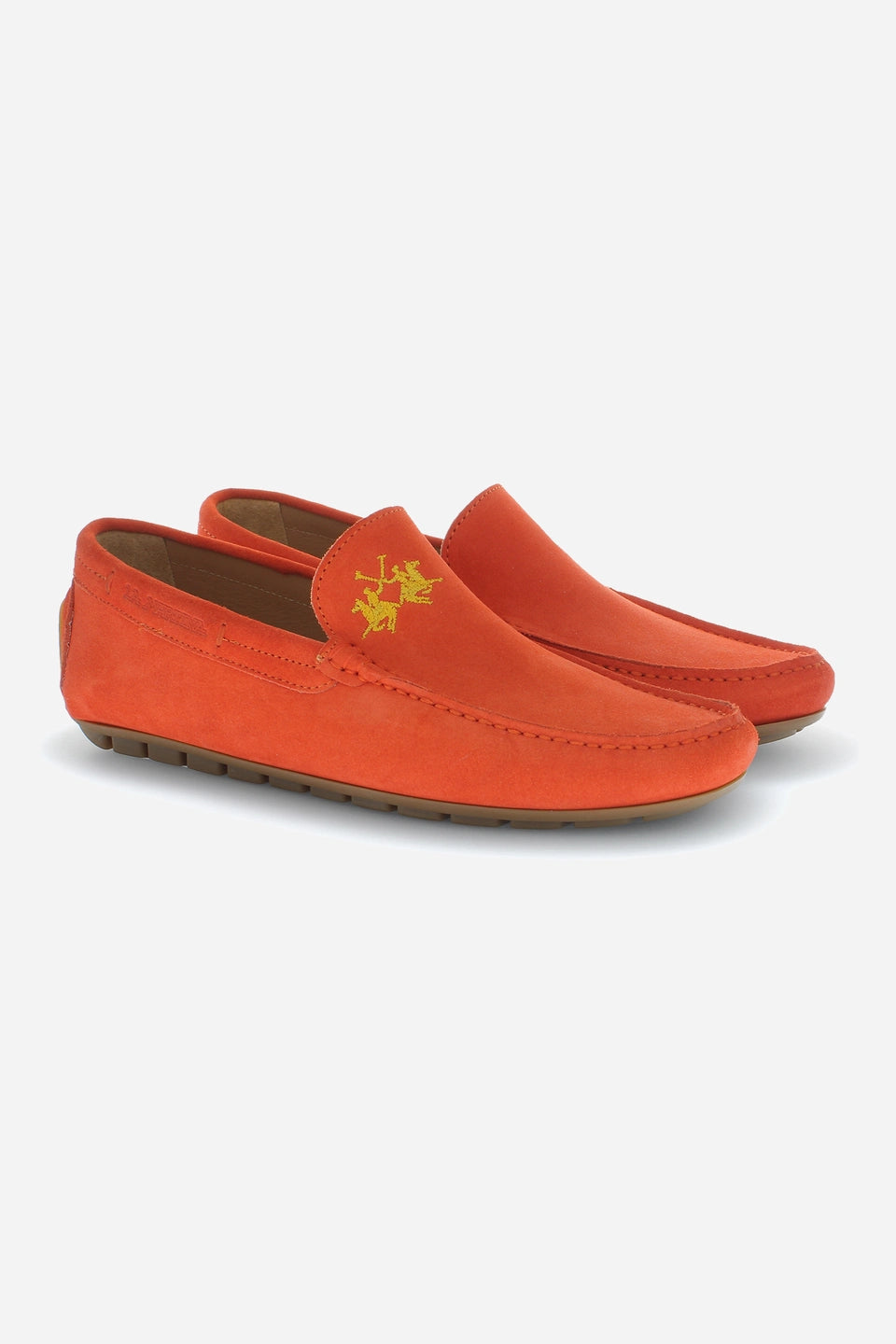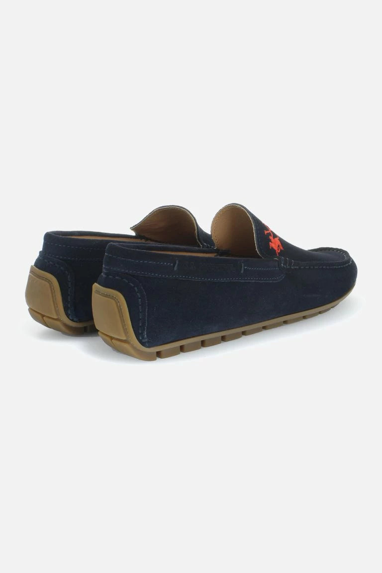 La Martina Designed suede moccasin with LM embroidered logo and rubber