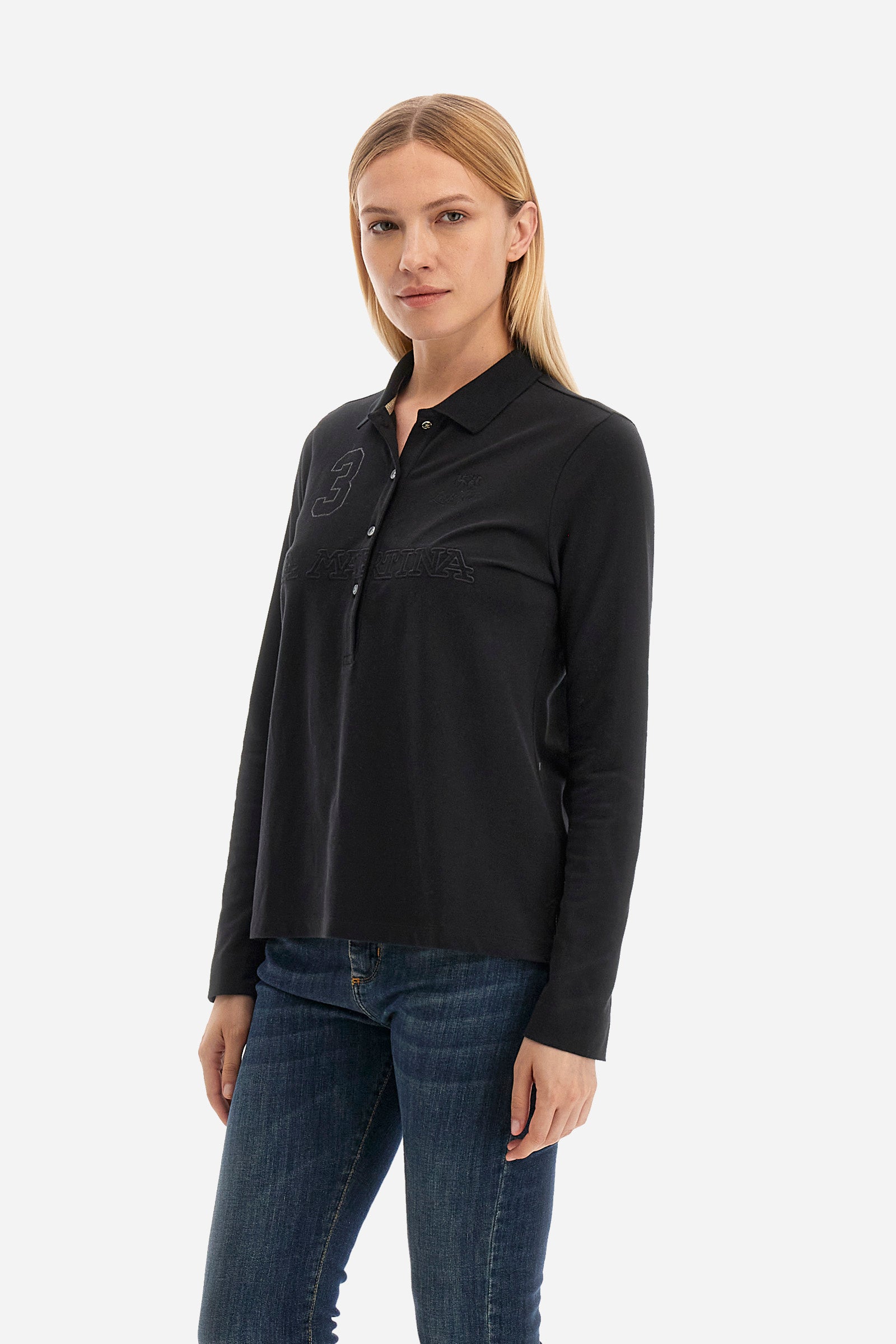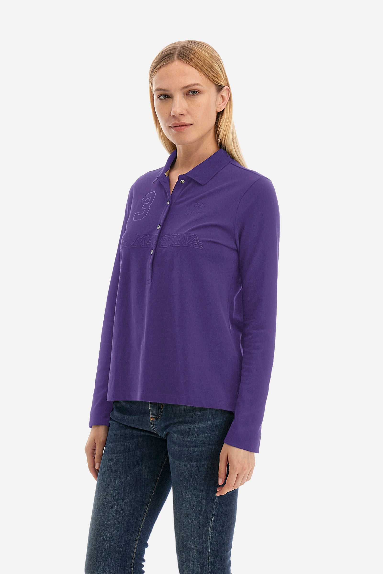 Expertly crafted for ladies, this long sleeve polo features elegant colour-on-colour embroidered details for a sophisticated touch. Made with high-quality materials, it provides both style and comfort for any occasion. See the difference with this must-have wardrobe staple.