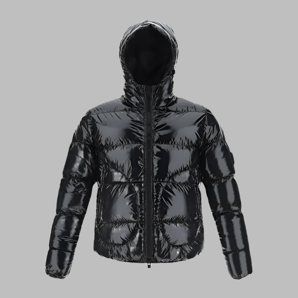 This Herno men's down puffer jacket combines sophisticated design with practical features. It includes a double zip closure for versatile wear, an adjustable hood for customized protection, and side pockets for convenient storage. The jacket’s gloss finish adds a sleek, modern touch while ensuring warmth and comfort in colder conditions. Ideal for those seeking both style and functionality in their outerwear.