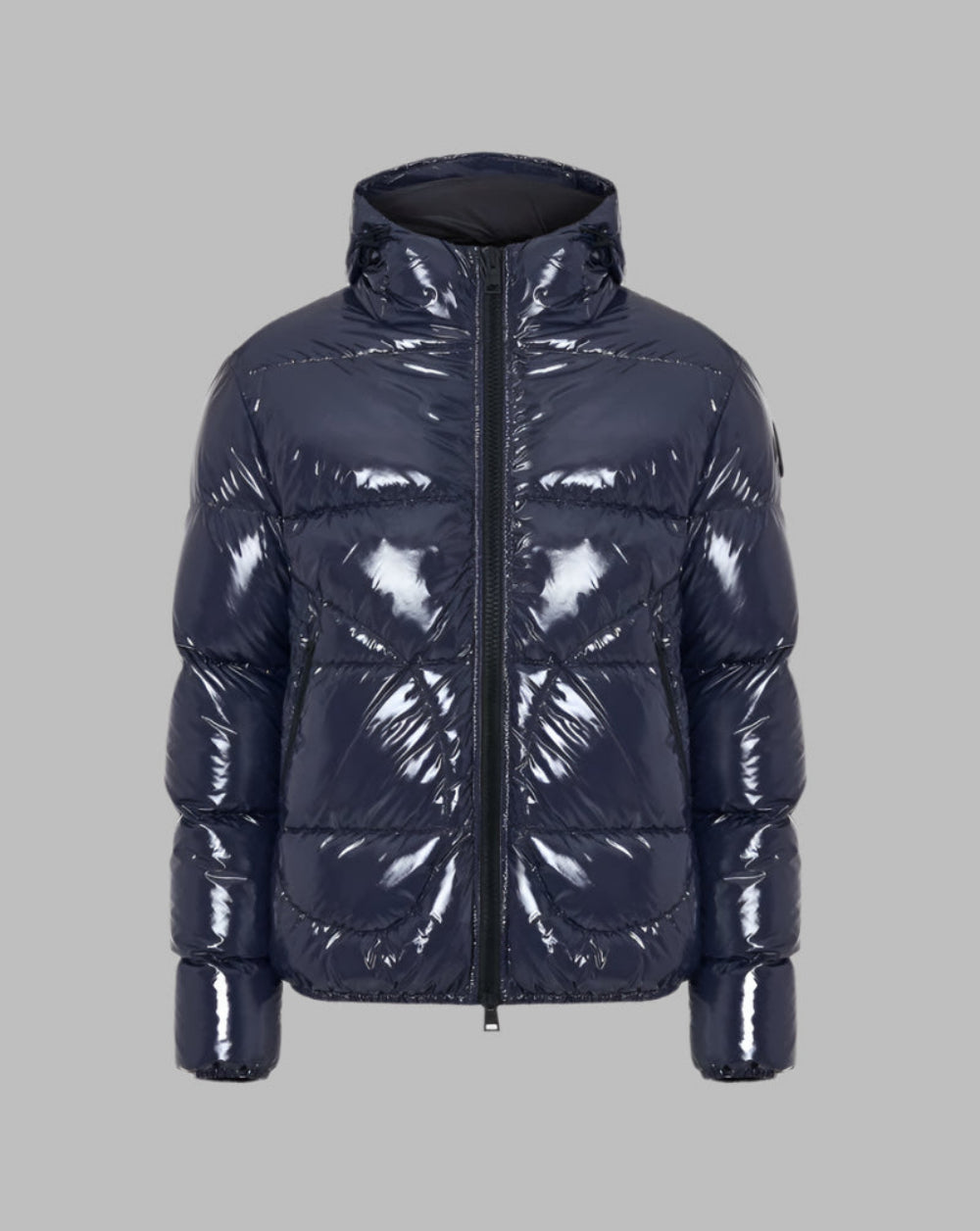 This Herno men's down puffer jacket combines sophisticated design with practical features. It includes a double zip closure for versatile wear, an adjustable hood for customized protection, and side pockets for convenient storage. The jacket’s gloss finish adds a sleek, modern touch while ensuring warmth and comfort in colder conditions. Ideal for those seeking both style and functionality in their outerwear.