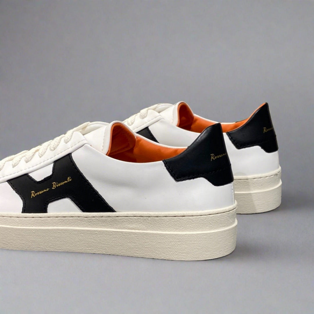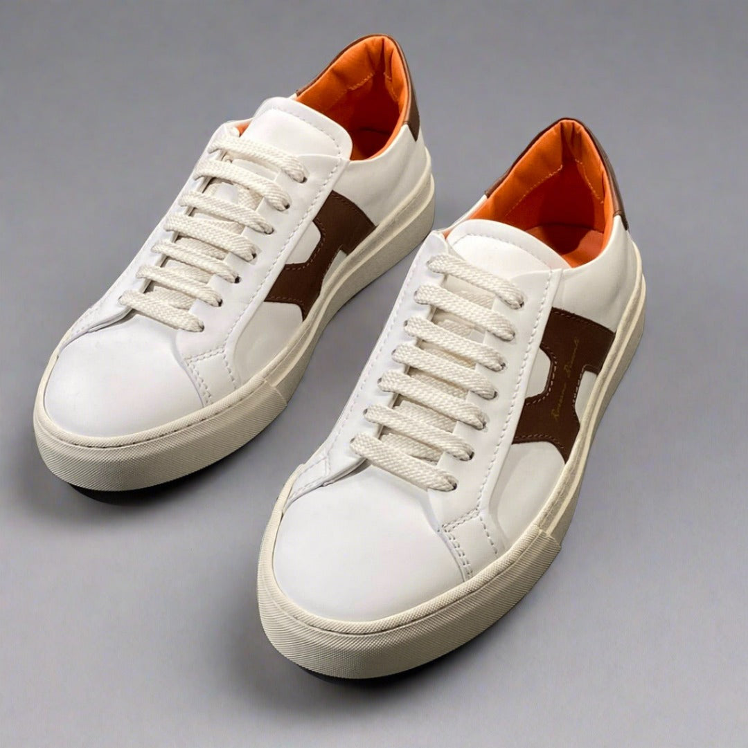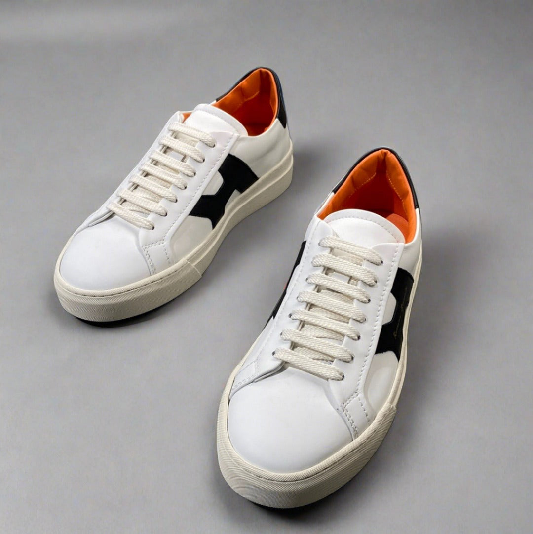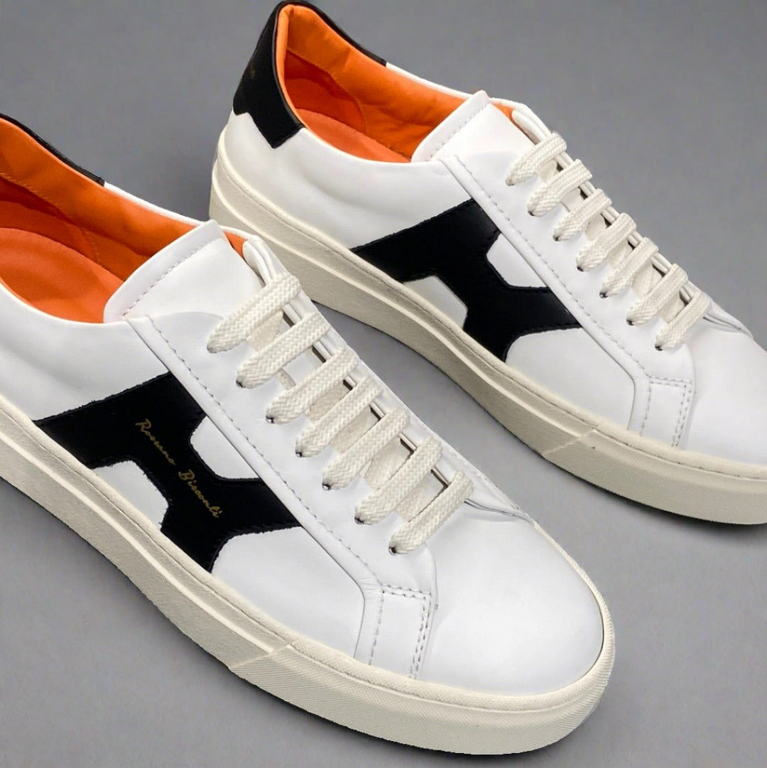 Classic leather lace up sneakers, 100% leather upper and inner with gold embossed logo and skid grip rubber sole - Made in Italy