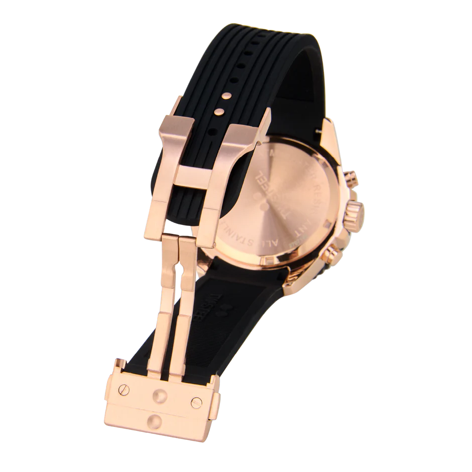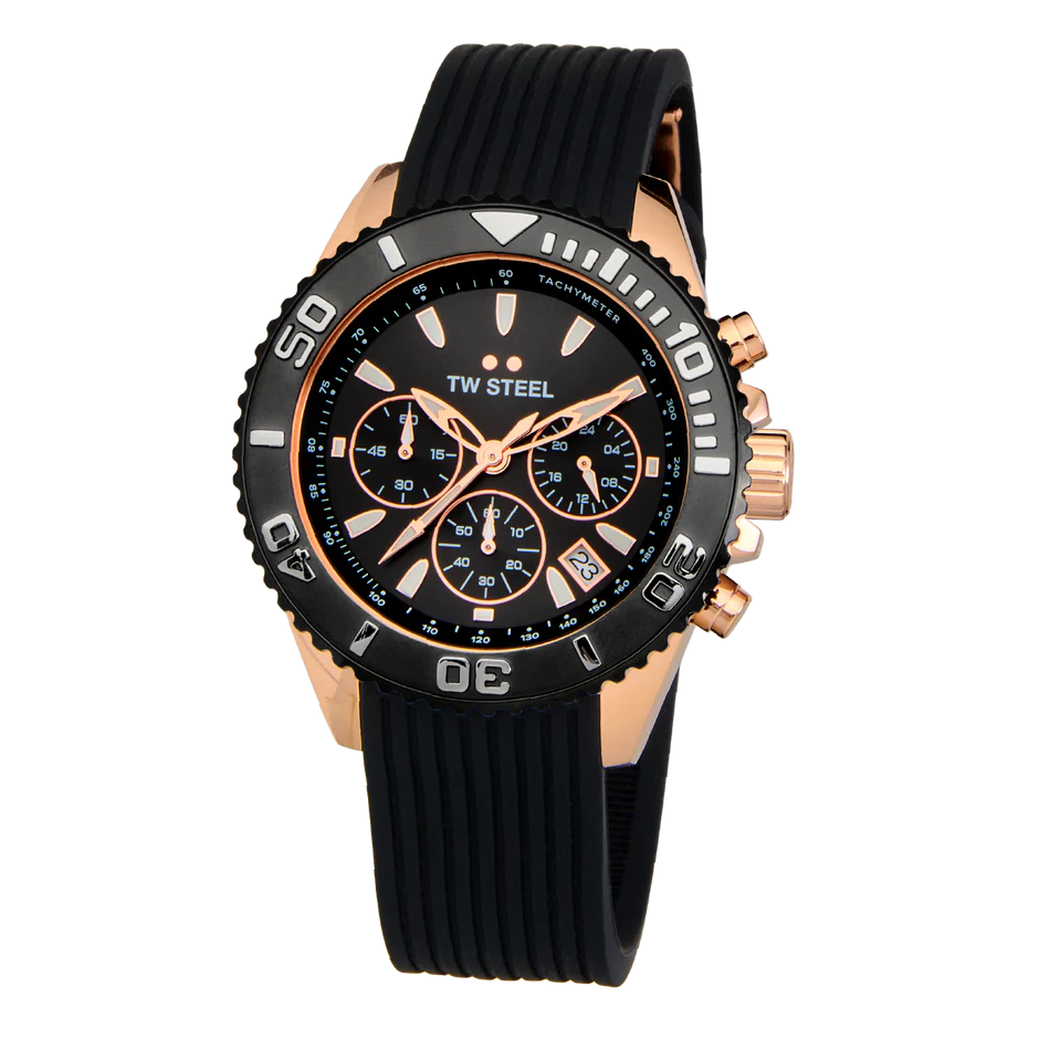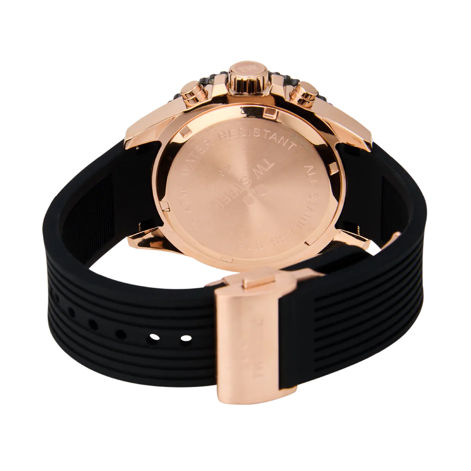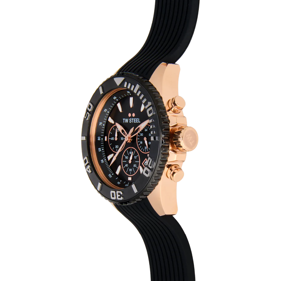With the Vanceur Diver collection, TW Steel navigates in style. The VA3 features a chronograph with a rosegold case, a dark blue rubber strap, 10 ATM and a 2-year global warranty.