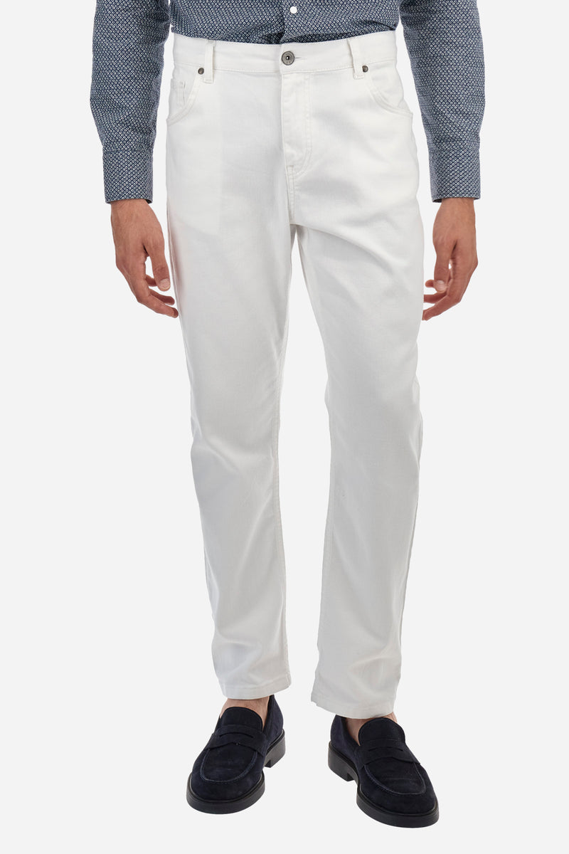 Crafted from sifted cotton, this white denim offers exceptional comfort and durability. Its refined fabric ensures a crisp, clean look ideal for versatile styling, while the expert tailoring guarantees a flattering fit. Perfect for those seeking timeless sophistication combined with everyday wearability.